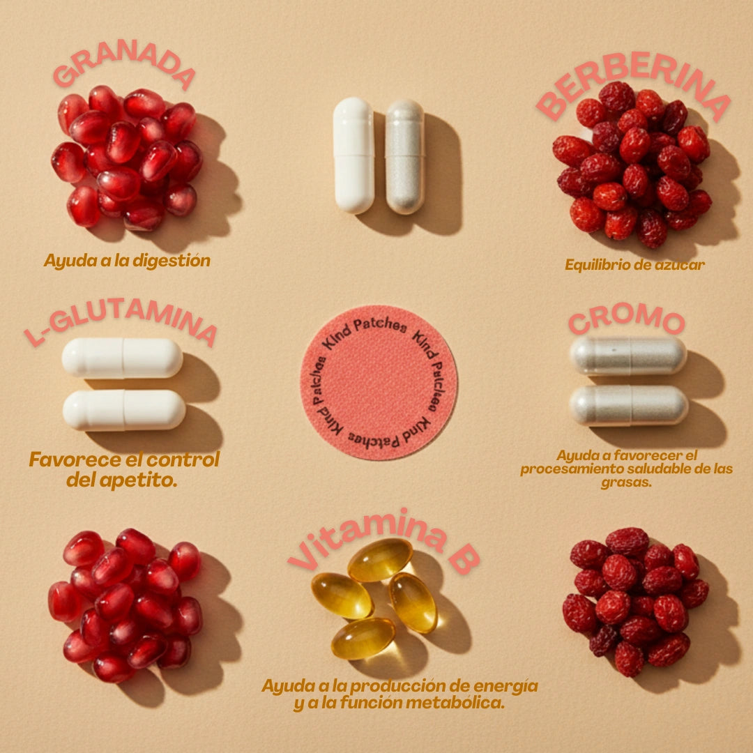 Nuestros parches de GLP-1 están formulados con ingredientes cuidadosamente estudiados para apoyar tus objetivos de salud. Entre los componentes activos encontrarás: